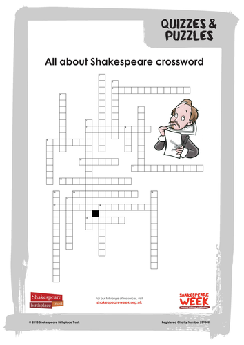 SHAKESPEARE crossword clue - All synonyms & answers All solutions for "Shakespeare" 11 letters crossword answer - We have 8 clues, 3 answers & 5 ... Top answer for SHAKESPEARE crossword clue from newspapers.