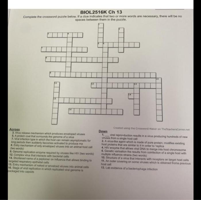Solved BIOL2516K Ch 13 Complete the crossword puzzle below ...